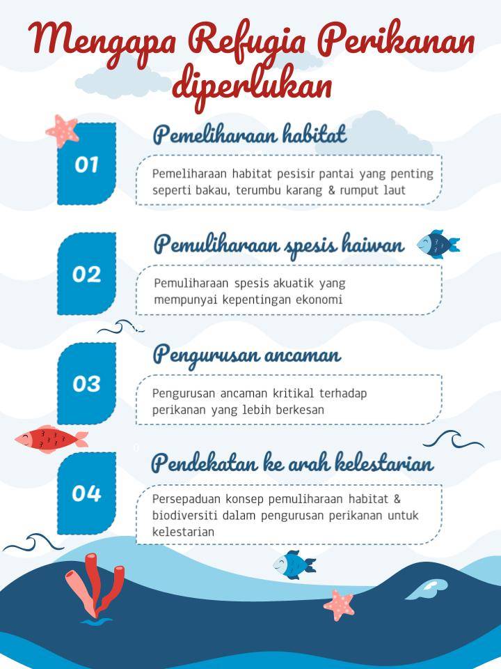 The Department of Fisheries Malaysia has identified tiger prawn at Kuala Baram and the mud spiny lobster on the east coast of Johor that needed intervention in order to secure the sustainability of the fisheries resources. The Department has developed a management plan for both the fisheries refugium to ensure the sustainability of the fisheries resources.